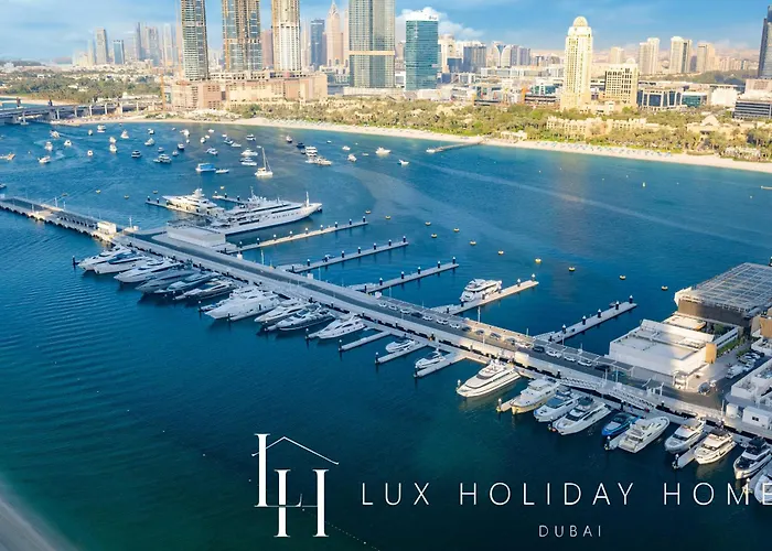 Lux The Marina Vista Beachfront Suite 5 Dubaï spacieux est situé à environ 7 km de l'Hôtel Burj al-Arab et à environ 25 à pied de Golf Emirates. Dans le domicile de 81 m^2 du quartier "Palm Jumeirah" à Dubaï, les hôtes peuvent profiter d'un centre de fitness et d'une piscine extérieure.